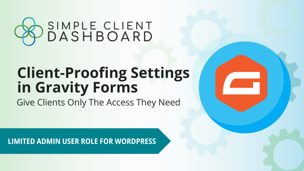 Simple Client Dashboard has been designed to integrate with Gravity Forms and allows you to set up a new role called “Admin” for your client. The free version of Simple Client Dashboard will allow your clients to view Gravity Forms entries/submissions but not edit forms or change settings.